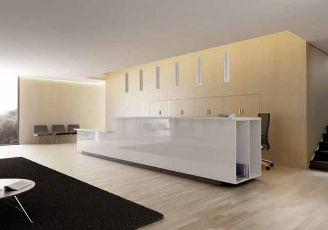 La línea del modelo de mostrador M10 otorga la elegancia y funcionalidad que requiere el área de recepción de una compañía.