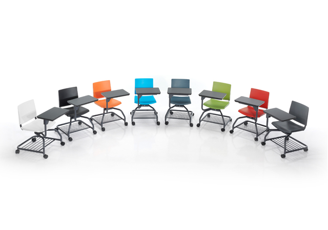La conocida silla Atenea se reinventa adaptándose a las nuevas necesidades de movilidad en las aulas, tanto universitarias (va en la línea del programa Bolonia en cuanto a la necesidad de espacios que fomenten el trabajo en grupo) como en el resto de áreas formativas donde se requiere soluciones que favorezcan la movilidad del usuario y el trabajo en equipo.