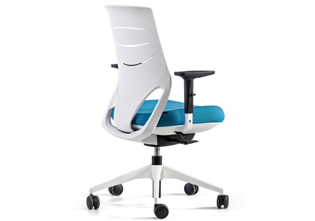 El innovador diseño del respaldo, fabricado en polipropileno y fibra de vidrio, permite una adaptabilidad al movimiento del usuario, complementado con el ajuste automático del refuerzo lumbar incorporado, que aporta un alto grado de confort.