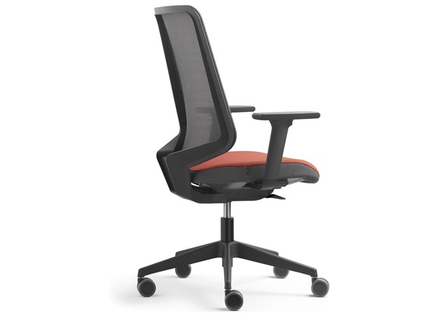 Su innovador respaldo de malla transpirable sobre un marco de poliamida flexible garantiza al usuario una saludable libertad de movimientos a la vez que mantiene una posición correcta. Opcionalmente puede llevar brazos fijos, regulables 1D, 3D o 4D.