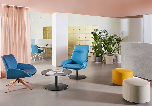 Noom es un amplio programa de soluciones soft seating, que conjuga butacas, sillas y banquetas, con geometrías suaves y cálidas, que encajan orgánicamente en espacios contract así como entornos de trabajo.