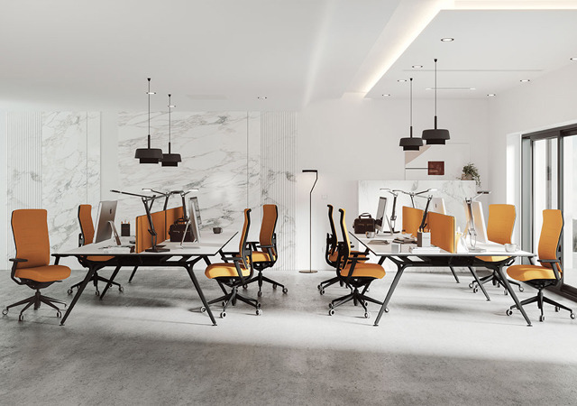Arkitek permite la incorporación de alas compartidas e independientes para puestos operativos de progresión, así como faldones; elementos funcionales para puestos con funciones representativas y de atención al público.